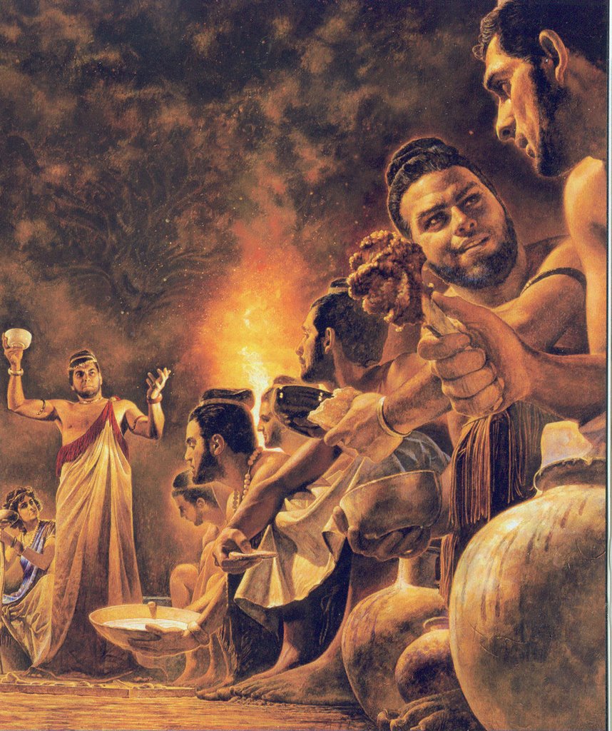 Una persona que no recibiera ritos funerarios, que muriera de hambre y sed, o ahogada, o en un descampado a solas, no podía entrar en el Irkalla, y se convertía en un Etemmu Murtappidu, que venía a ser como un fantasma con muy mala uva dispuesto a vengarse de todo y de todos, pero sobre todo de aquellos que no le habían ofrecido los ritos. Este tipo de fantasmas eran muy peligrosos, pues al no entrar en el Irkalla podían atacar en cualquier instante. Los otros, los que sí habían entrado pero tenían algún tema pendiente, solo podían volver un día al año. En el mes de Neizigar (sumerio) o Abum (acadio), que correspondería a nuestro Agosto, se celebraba el Día de los Muertos, bajo la ceremonia del Kispum. Como ese día los muertos podían salir de su mundo, se les trataba por todo lo alto. Se instalaba en el lugar principal la “silla de honor”, aunque en hogares humildes fuese un simple taburete, que solía ser heredada por el primogénito (raras veces por la primogénita) (*). Ante ella se colocaban las mejores viandas y bebidas y se recordaba a los antecesores por sus nombres hasta la tercera generación. A los demás se les trataba de “parientes”. Esto tenía tanta importancia que hubo reyes que falsificaron su genealogía en esa ceremonia. Así, por ejemplo, el usurpador asirio Shanshi Adad I ofreció un kispum al viejo gobernante acadio Sargón de Akhad, que había vivido cuatro siglos antes y era considerado un ejemplo para reyes, haciendo creer con ello que era “descendiente”.