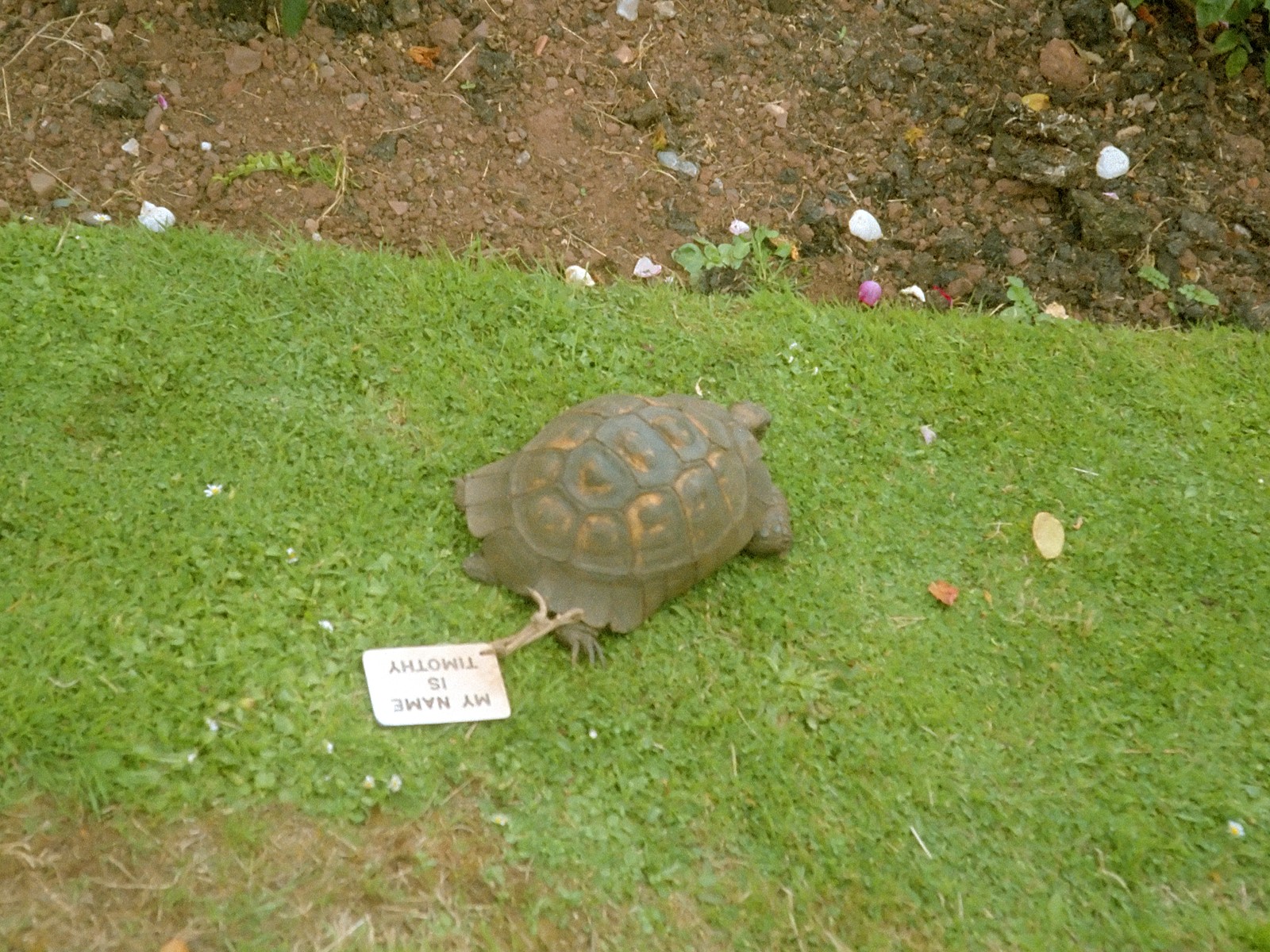 Cuando llevaba varios años viviendo plácidamente en el jardín del castillo decidieron que se aparease… ¡sorpresa! Era hembra. Pero después de tanto tiempo llamándola Timothy prefirieron no cambiarle el nombre y le colgaron un chapa con «My name is Timothy«. Está enterrada en el cementerio familiar.
