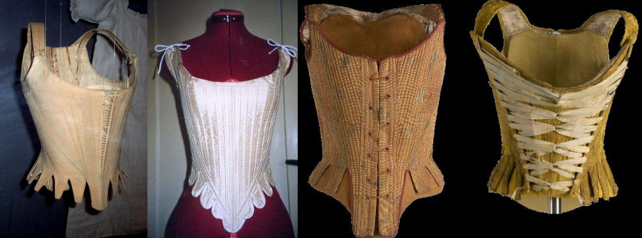 Los corset metálicos del s. XVI son un mito, es verdad que existen unas pocas piezas, pero seo no es lo que la gente se ponía salvo si tenían ciertos problemas. La prenda que se usabas para modificar el tórax femenino es el Corps piqué, cuya traducción es cuerpo pespunteado. Se realizaba cosieno varias telas de lino o algodón juntas en tupidos pespuntes verticales para darle rigidez al «corset»