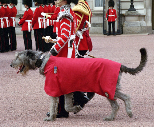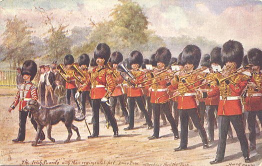 Irish Guards es un regimiento del Ejército Británico creado en abril de 1900 por orden de la reina Victoria en reconocimiento a la valentía demostrada por los soldados irlandeses que participaron en la Guerra de los Bóers. Apenas dos años después, y con el propósito de popularizar una raza autóctona, se incorporó como mascota de la nueva unidad a un Irish Wolfhound (lebrel o lobero irlandés), al que pusieron de nombre Brian Boru -el nombre de uno de los grandes héroes nacionales de Irlanda-.