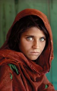 La segunda fotografía, que todos conoceréis, fue tomada por Steve McCurry en 1984. En la foto aparece Sharbat Gula, una niña de 12 años refugiada en el campamento de Nasir Bagh (Pakistán) durante la invasión soviética de Afganistán. La expresividad de sus ojos la llevaron a la portada de National Geographic (junio de 1985). Tras varios años de búsqueda, por parte de Steve, en 2002 localizó a Sharbat en una aldea de Afganistán casada y con tres hijos.