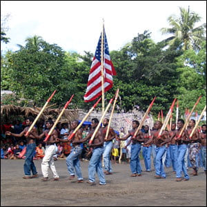 Cada año, el 15 de febrero, los nativos de la República de Vanuatu celebran el John Frum Day Parade. Se visten con vaqueros, se pintan USA en el pecho y la espalda y desfilan descalzos ante la bandera americana con sus fusiles de bambú al hombro.