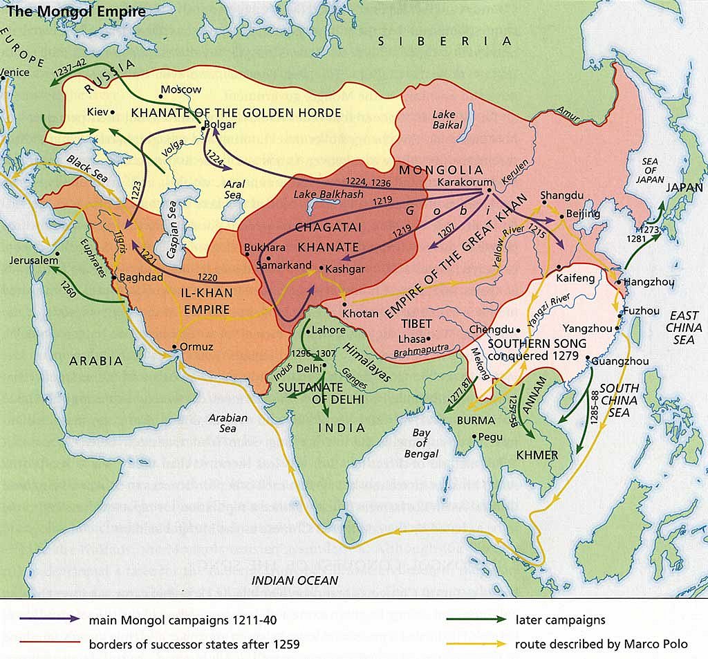 A mediados del siglo XIII el poderoso Imperio mongol fundado por Gengis Khan comenzaba a resquebrajarse. Tras la muerte de Möngke Khan en 1259 comenzó una guerra civil por la sucesión y, aunque oficialmente el título lo heredaría Kublai Khan (el Gran Khan), el imperio acabaría fragmentado en cuatro khanatos: la Horda de Oro, el Ilkhanato de Persia, el Khanato de Chagatai y, tras la conquista completa de China por Kublai Khan (fundador de la dinastía Yuan), el Imperio del Gran Khan. Aunque en la teoría actuaban de forma independiente, en la práctica existía cierto vasallaje del Ilknanato respecto al Gran Khan y un odio irreconciliable entre los hermanos, Kaidu, señor del Khanato de Chagatai, y Kublai Khan. De hecho, estuvieron 30 años en guerra.