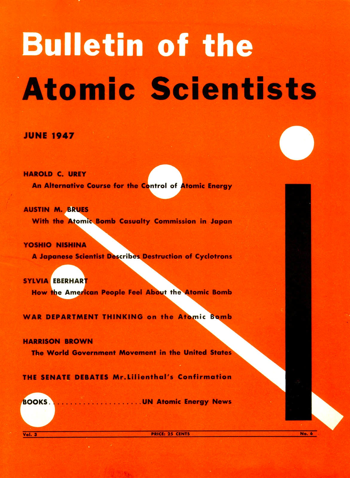 Aunque en un principio el boletín tenía una tirada muy pequeña, en 1947 se convirtió en una revista de tirada nacional. El Reloj del Juicio Final «apareció» en la portada de junio de 1947, diseñada por Martyl Langsdorf, esposa de Alexander Langsdor, uno de los físicos que también había trabajado en el Proyecto Manhattan.