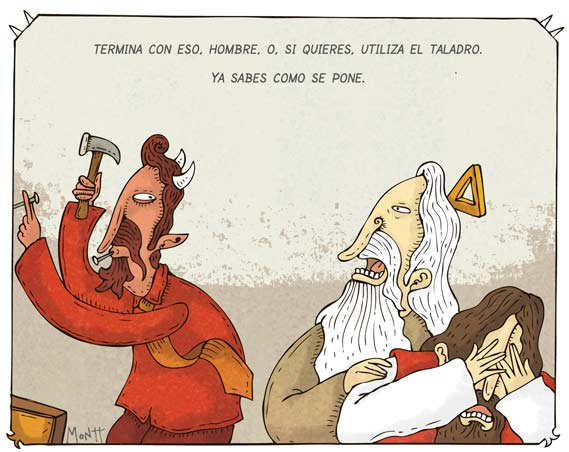 Para muchos, estos días son simplemente una semana de vacaciones, pero saben que van a tener que aguantar el estruendo de las matracas («dar la matraca«; para anunciar los actos religiosos de Semana Santa se utiliza este instrumento de madera construido con dos mazas que forman una especie de aspas, y que cuando se hace girar produce un sonido que resulta bastante molesto) y las procesiones de nazarenos («timo del nazareno«; el timador, nazareno, se gana la confianza de una empresa proveedora haciendo algunos pequeños pedidos que paga rápidamente, una vez generada la confianza el nazareno realiza una compra de mucho más valor que no paga y desaparece) con sus capirotes («tonto de capirote«; gorro con forma de cono forrado de tela que caía sobre los hombros y con un par de agujeros para los ojos que protege la identidad. Cuando se lleva con la cara descubierta, el pueblo se reía de quién lo llevaba porque se desvelaba su identidad y ya no tenía sentido).
