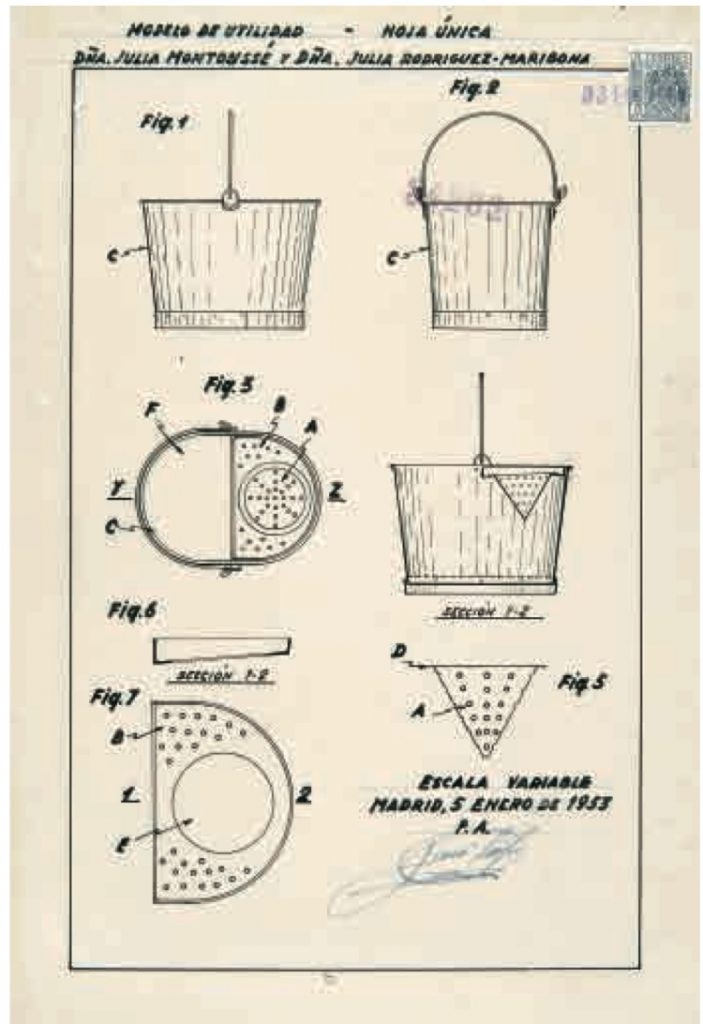 En 2011, con motivo del bicentenario de la promulgación de la primera Ley de Patentes en España, la Oficina Española de Patentes y Marcas publicó el catálogo «200 años de patentes”, en el que se incluye la sección «Patentes de Mujeres». En dicha sección, aparece este invento «registrado en 1953 por Julia Montousse Fargues y Julia Rodríguez-Maribona. Estas dos avilesinas inventaron una disposición de cubo, palo y trapo por la que obtuvieron el modelo de utilidad nº 34.262, de título dispositivo acoplable a toda clase de recipientes tal como baldes, cubos, calderos y similares, para facilitar el fregado, lavado y secado de pisos, suelos, pasillos, zócalos y locales en general. No puede calificarse de otra cosa que de una auténtica fregona muy anterior a la famosa de Manuel Jalón»