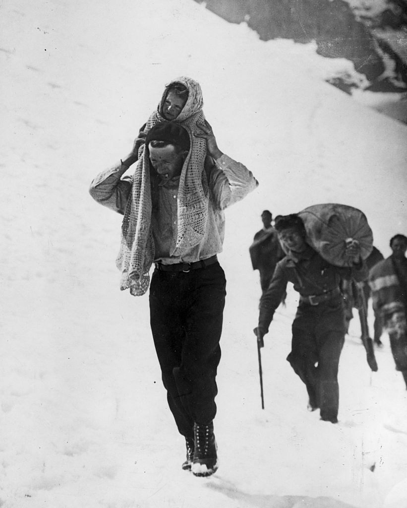 Dicho sea de paso, dos o tres años despues de la foto del «poilu» (el soldado francés) dando de beber al bebé español refugiado, ese mismo soldado, un suboficial, una de tres: estaba muerto, prisionero de los nazis o huyendo como refugiado, rumbo a… ¿España?