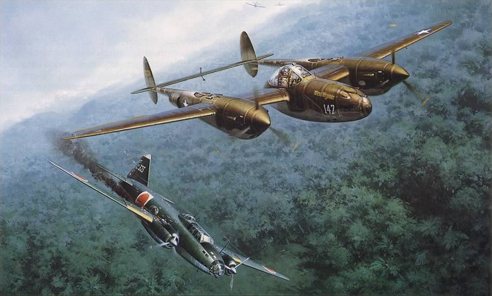 Un acontecimiento clave en el frente del pacifPac de la SGM , y uno de los hechos en que se recuerda mejor al demonio de cola bifurcada como lo apodaban los alemanes el veloz Lockheed p-38 Thunderbolt.