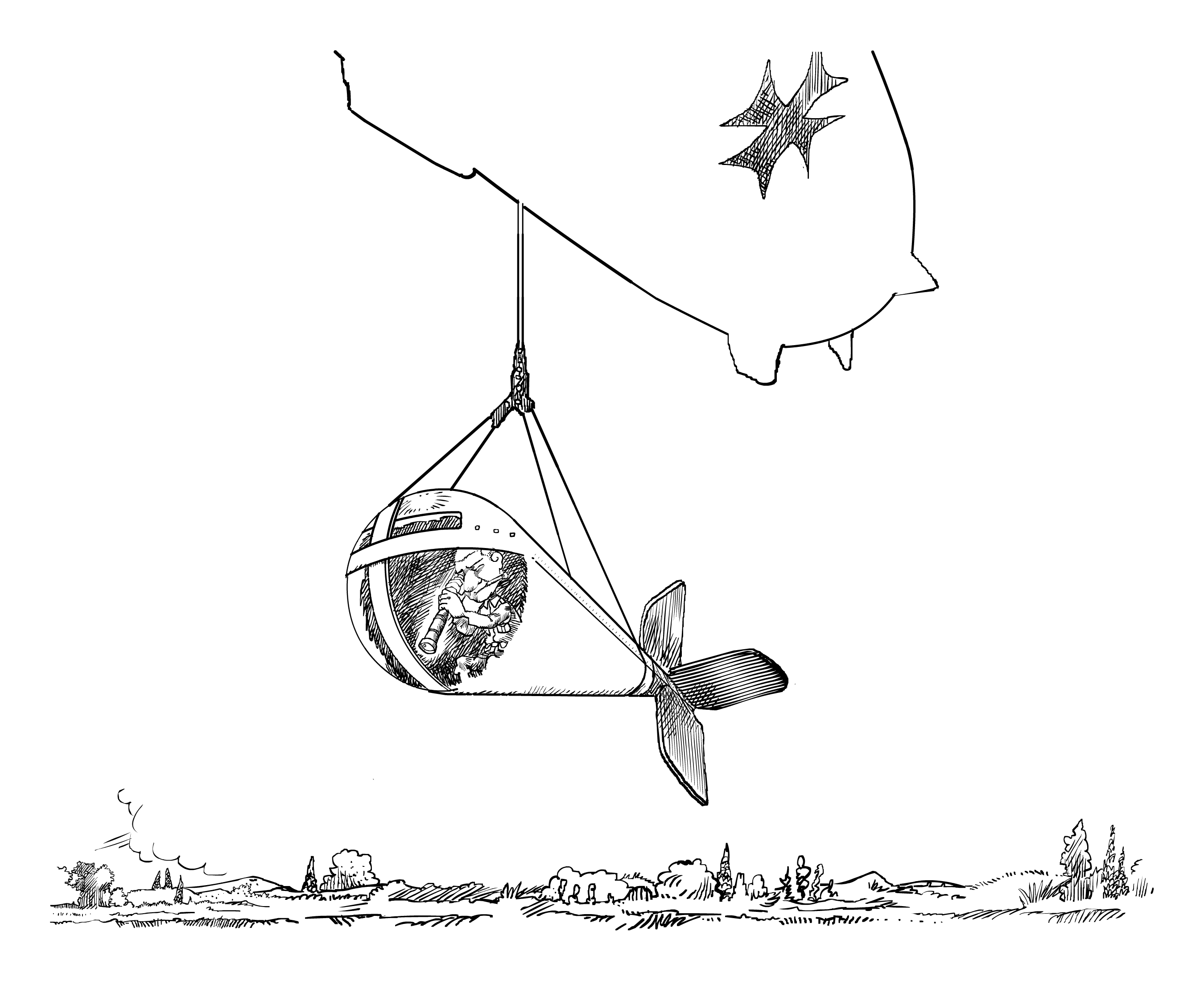 El ingeniero Paul Jaray estaba trabajando en cómo mejorar la antena de comunicaciones —un cable suspendido en el aire—, que con el movimiento provocado por el viento dificultaba enormemente la audición. Debía tratar de minimizar el movimiento de la antena y Jaray añadió un peso al final del cable a modo de plomada, el peilgondel. Observando la solución al problema de las comunicaciones… ¡Eureka! Cambió el peso añadido al final del cable por una cápsula o góndola en la que cupiese una persona y desde allí, cientos de metros más abajo del dirigible, poder observar y vigilar con más precisión e incluso dirigir la navegación de la nave principal. De esta forma, el dirigible permanecía a salvo de los aviones enemigos y con la cápsula se tenía una visión más «cercana» y precisa. Se acorazó la cápsula y se equipó con un asiento, cartas de navegación, catalejo y un teléfono que comunicaba directamente con el dirigible. Al estar lejos de la bolsa que contiene el hidrógeno —altamente inflamable— era el único miembro de la tripulación al que se le permitía fumar.