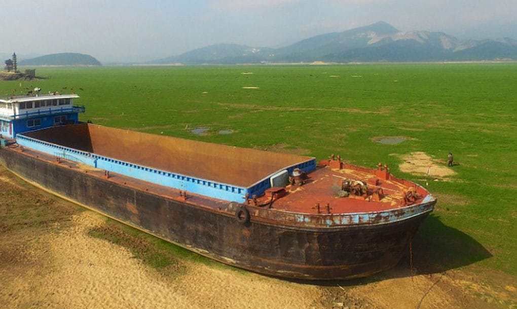 Si hoy en día quisiésemos recrear esa batalla en el mismo lugar, no podríamos. Los 850.000 soldados tendrían que luchar a pie. La construcción de la presa de las Tres Gargantas, responsable de la reducción del caudal del Yangtsé, la sequía y, sobre todo, la extracción de arena han provocado que el lago se esté convirtiendo en una inmensa pradera. Más de 236 millones de metros cúbicos de arena se retiraban cada año del lago para su uso en la construcción, convirtiendo al Poyang en la mina de arena más grande del mundo.