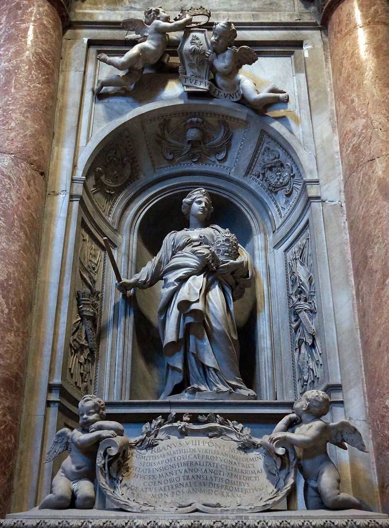 Y si esto no fuera suficiente para ser enterrada en el Vaticano, con Gregorio VII todavía vivito y coleando hizo testamento: todas sus posesiones, que no eran pocas ni insignificantes, pasarían a manos de la Iglesia cuando ella falleciese. Durante varios años los emperadores y la Iglesia mantuvieron disputas por dichas posesiones y la validez de aquel testamento, hasta que en 1213 el emperador Federico II reconoció el derecho de la Iglesia sobre las posesiones de Matilda. Matilda falleció en 1115 y en 1645 sus restos fueron trasladados y sepultados a la Basílica de San Pedro a una suntuosa tumba esculpida por Bernini.