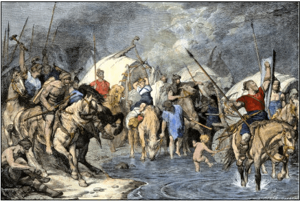 Boiorix al frente de los cimbrios, un pueblo germánico cuyo lugar de origen podemos situar en la actual Dinamarca, y Teutobod liderando a los teutones, obligados a dejar sus frías tierras en la península de Jutlandia muy probablemente por un severo empeoramiento climático, protagonizaron una de las migraciones tribales más numerosas de la Antigüedad. Según Plutarco, aquella marea humana era de cerca de ochocientas mil personas, de ellas trescientos mil guerreros, quizá una cifra muy probablemente inflada para mayor gloria de sus vencedores. En su camino hacia el cálido sur fueron derrotando y asimilando otras tribus de Germania como los boyos o los ambrones.