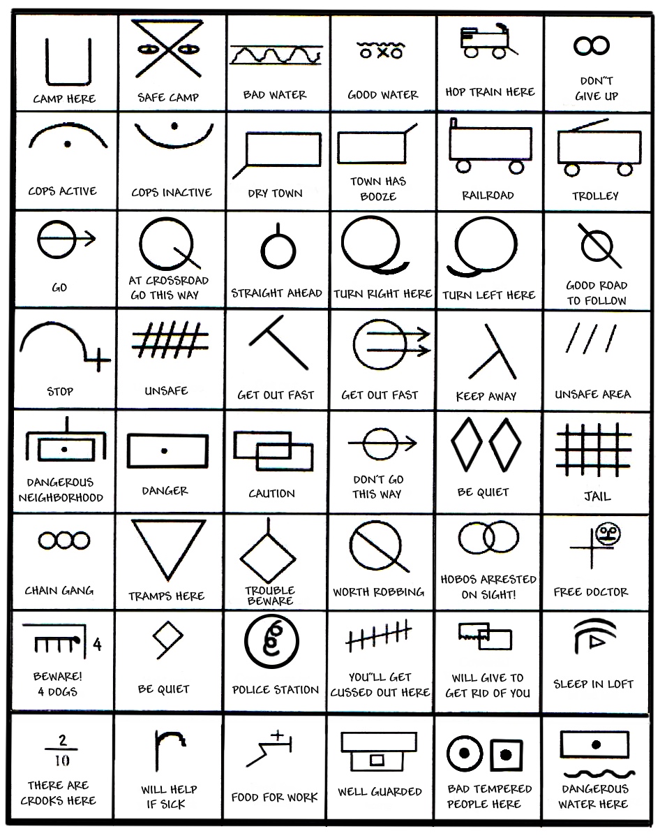 […] Código Hobo, el lenguaje secreto de los vagabundos durante la Gran Depresión: “Un lenguaje secreto para advertir de peligros, viajar de forma segura, facilitar la estancia o, simplemente, para dar la bienvenida a otros vagabundos que pasasen por allí. Además, trataron de que aquel lenguaje de símbolos, tipo jeroglíficos, no llamase la atención y pasase inadvertido para el resto de mortales, por lo que utilizaron líneas, círculos y gráficos muy básicos. Aquí tenéis algunos de ellos…” […]