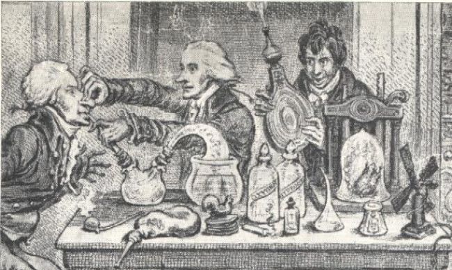 La prometedora carrera del joven Thomas Beddoes -licenciado en Medicina y en Química, entusiasta botánico, capaz de traducir textos en latín y griego, hablar inglés, francés, alemán, italiano o español, e incluso convertirse en un experto en textos védicos y brahmánicos de la India-, se vio truncada en parte por ciertas excentricidades y por su crítica a la sociedad inglesa frente a su admirada Francia revolucionaria. Vamos, que lo que se dice “don de gentes”, no tenía. En cuestiones médicas, tenía cierta obsesión por la inhalación de gases para curar ciertas enfermedades contagiosas. A pesar de algunos reveses experimentando con conejos, gatitos e incluso con el mismo, estaba convencido de que su terapia revolucionaria transformaría la vida humana y que, antes o después, todos los hogares contarían con un pequeño aparato para la producción de gases necesarios y beneficiosos para la salud. Optimismo no le faltaba.