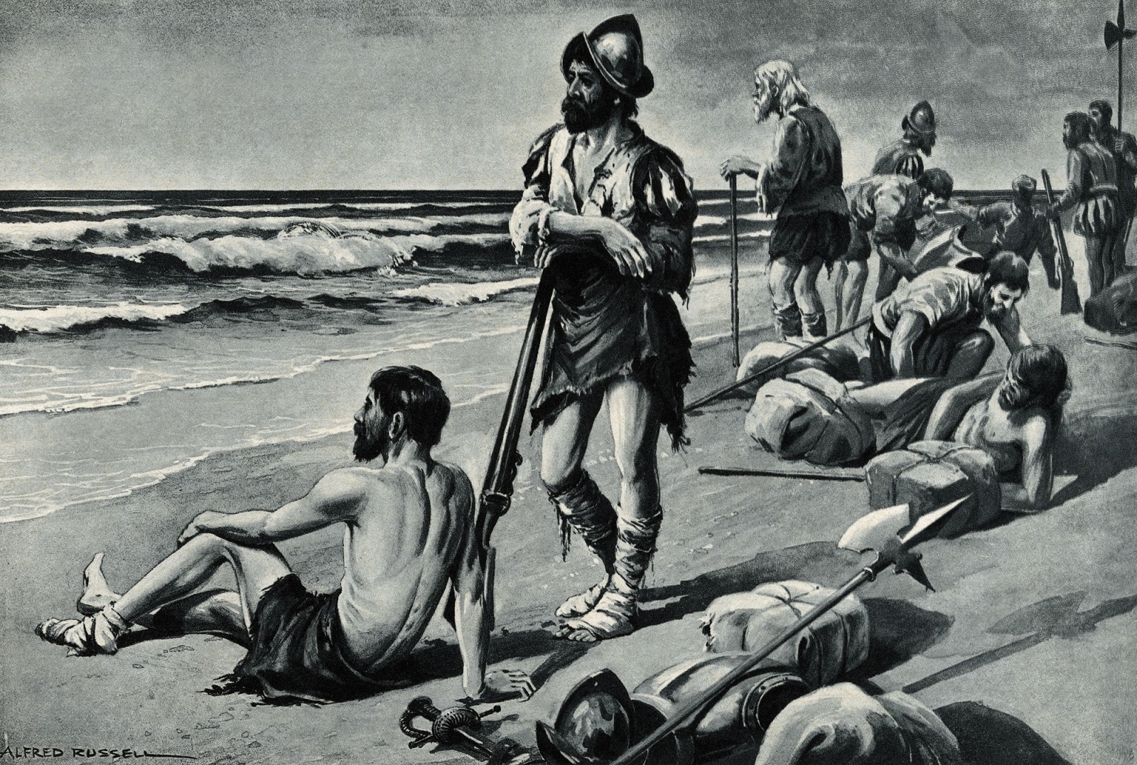 El 17 de junio de 1527 partía de Sanlúcar de Barrameda (Cádiz), rumbo a la colonización de la Florida, una expedición encabezada por Pánfilo de Narváez. Tras varios contratiempos (deserciones, tormentas y huracanes, decisiones erróneas…) llegaron a la bahía de Tampa (Golfo de México) en abril de 1528. Después de los primeros contactos con los nativos de la zona, en este caso podemos hablar de relaciones amistosas, Narváez decidió dividir la fuerza en un contingente terrestre y otro marítimo: trescientos hombres por tierra hacia el norte y los tres barcos, con el resto de la expedición, navegarían por la costa siguiéndoles de cerca por si los necesitaban. El contingente terrestre, con Narváez al frente, fue avanzando hacia el interior, haciendo suyo todo lo que encontraba y dejando a sus paso demasiados enemigos (aquí ya quedaba poco de buen rollito)… hasta que entraron en el territorio de los apalaches. Sus andanzas les precedían y éstos no estaban dispuestos a sufrirlas en sus carnes. Las emboscadas, el robo de suministros y el continuo acoso obligaron a Narváez a abandonar la idea de adentrarse más al norte y decidió regresar a la costa para buscar el refugio de sus barcos. Pero ya no estaban.