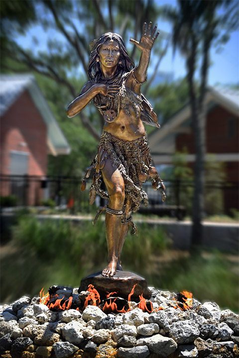 ¿Qué fue del contingente marítimo? Siguiendo las instrucciones de Narváez, habían navegado hacia el norte ignorando que la expedición terrestre había decidido volver al punto de partida. Sin saber nada de ellos y con los suministros ya escaseando, decidieron regresar a la Habana. Se reabastecieron y regresaron para buscar a Narváez y los suyos. Los barcos recorrieron la costa durante un año, pero ni rastro. Fondearon en la bahía de Tampa y desde uno de los barcos se envió un bote a tierra con cuatro marineros para buscar algún indicio de su paradero. Nada más desembarcar, los españoles fueron capturados por lo indígenas que vigilaban a la flotilla. La expedición terrestre de Narváez había dejado muchas deudas pendientes entre los indígenas y cualquier español que se acercase a su territorio las iba a pagar. Fueron llevados ante el cacique Hirrihigua, quien decidió entregar tres de ellos a sus guerreros y reservar a nuestro protagonista, el marinero Juan Ortiz, para un ritual similar al martirio de San Lorenzo: ponerlo sobre una especie de parrilla y quemarlo vivo. Cuando estaba a punto de que le prendiesen fuego, Ulele, la hija del cacique, se abrazó al español y rogó a su padre que le perdonase la vida.