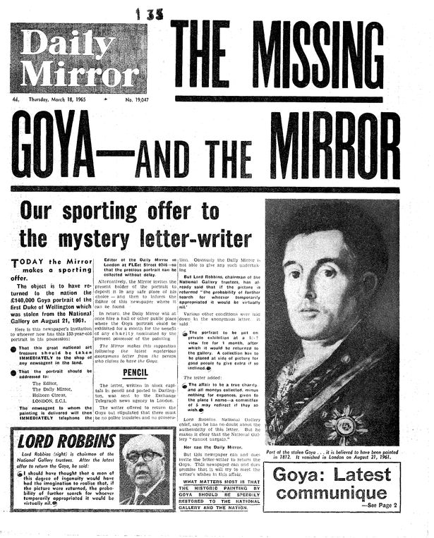 Creyéndose una especie de Robin Hood contemporáneo, el antiguo conductor de autobuses envío cartas a la policía y varios medios donde reclamaba, para que la obra fuera devuelta, el pago de 140.000 libras que deberían ser repartidas entre los más necesitados, una acción que según sus propias palabras “debía tocar el bolsillo de aquellos que querían más al arte que a la caridad”. Estas primeras misivas fueron del todo ignoradas, pero lejos de cejar en su empeño reenvió una segunda remesa de cartas más centradas en su verdadero objetivo. En ellas mencionaba explícitamente su indignación con la tasa de la BBC, y argumentaba que el dinero del rescate sería utilizado para sufragar el coste de dicho canon para jubilados y pobres. Kempton continuó mandando cartas esporádicamente, misivas que en la mayoría de casos fueran descartadas por creerlas fanfarronerías de algún gracioso. Hasta que, en 1965, harto de este juego del gato y el ratón, decidió acabar con todo y dejar dicha obra en una taquilla de una consigna de una estación de tren, tras lo cual avisó al rotativo Daily Mirror. Si su desaparición había estado envuelta en un misterio sin resolver, su reaparición lo había superado con creces. El retrato, en buen estado pese a las condiciones en que había sido mantenido, fue de nuevo expuesto unos días después como si nada de lo acontecido hubiera sucedido.