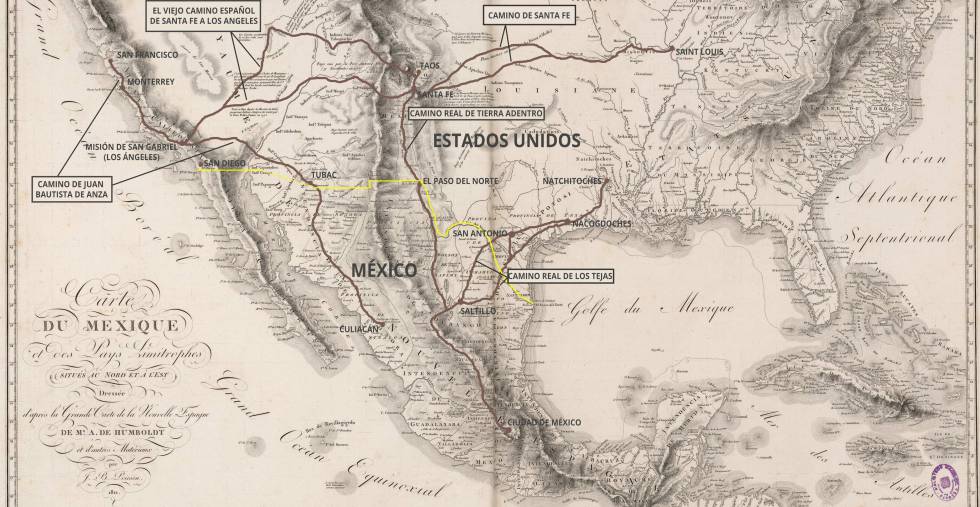 España hizo el esfuerzo de abrir caminos en este territorio y los utilizó durante el tiempo que estuvo presente allí (hasta la independencia de México en 1821), también los utilizaron los ingleses en la colonización anglosajona -que mira tú por dónde se encontraron un territorio bastante estructurado y comunicado-, y finalmente los estadounidenses para la invasión de México en 1846 y para su expansión hacia el Oeste en la segunda mitad del siglo XIX.