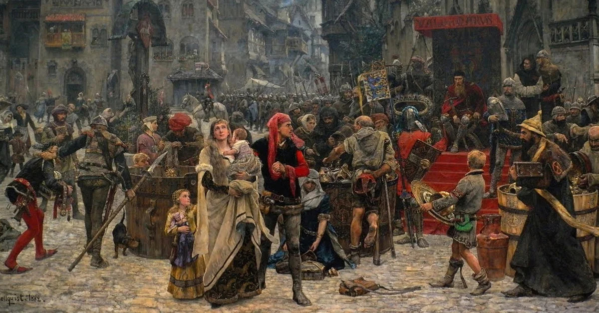 Mientras esperaba al Condestable, o eso quise creer yo, me di cuenta que no hacía falta ser muy avispado para saber que allí se estaba celebrando algo: una gran mesa con jarras de vino y viandas, adornos por aquí y por allá, las gentes alegres y con la ropa de los domingos. Aún así, algo no cuadraba para ser una gran celebración. Las caras y las manos de los hombres y las mujeres que me rodeaban, curtidas, morenas y ajadas, eran propias de gentes que trabajaban de sol a sol y no de nobles ociosos. Sus ropajes, aunque limpios y cuidados, eran de lana y lino; allí no había seda, ni adornos de oro o plata. Eran gentes del pueblo. Y yo, yo un mercader. Así que, tal y como había previsto, aquello tenía pinta de ser una boda entre siervos.