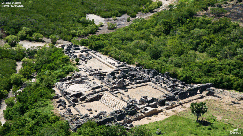 Este palacio está situado en Kilwa Kisiwani, una pequeña isla junto a la costa de Tanzania que representa los vestigios de un gran puerto comercial. Entre los siglos IX y XVI, salían el el oro, el marfil y los esclavos hacia el mundo árabe, y llegaban la seda, la porcelana y las especias de Asia. Husuni Kubwa fue construido de piedra de coral en el siglo XIV por el sultán al-Hasan ibn Sulaiman.