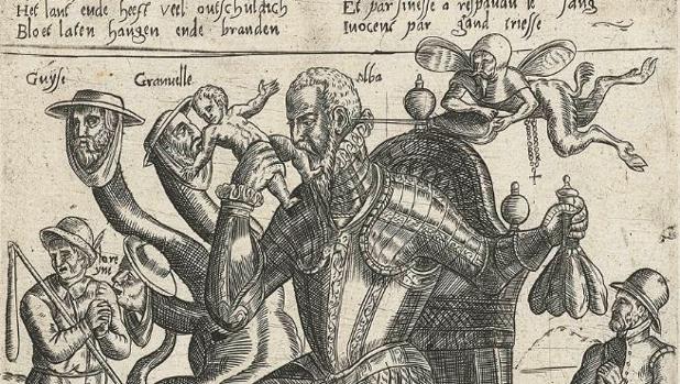 Y sabiendo estar en misa y repicando, hasta que Felipe II lo puso en busca y captura, Guillermo de Orange, un hombre ambicioso de poder que supo moverse como nadie en este lodazal (se le considera el padre de la nación holandesa), un astuto político (siempre supo decir a cada uno lo que quería oír), un militar mediocre y un auténtico maestro de la propaganda moderna. Ríete tú del “busque, compare y si encuentra algo mejor, cómprelo”. Y prueba de ello, su famosa Apología, un panfleto vehemente, como toda apología, escrito por el hugonote francés Pierre Loyseleur del Villiers, refugiado en la Corte de Orange tras escapar de la matanza de San Bartolomé en Francia, para alabanza, defensa y justificación de lo hecho y dicho por el gran libertador. Y si para ello hay que poner a caer de un burro a los españoles y a Felipe II, aunque curiosamente siga insistiendo en que no se levanta contra él, pues mejor que mejor. Su presentación oficial se hizo con la lectura pública en diciembre de 1580, convirtiéndose automáticamente en el número uno en las listas de ventas, tanto en los Países Bajos como en el resto de cortes europeas. Un soplo de aire fresco frente al absolutismo, un canto a la libertad, una oda al amor entre los pueblos, un… un panfleto propagandístico (de lo bueno que era el de Orange, que actuaba siguiendo los designios de Dios a obrar con justicia) y amarillista (de lo malos que somos los españoles). De Felipe II, al que dice respetar como su señor, lo acusa de incesto, bigamia y adulterio, además de envenenar tanto a su hijo Carlos como a su tercera mujer, Isabel de Valois; al Duque de Alba de ser un ogro que come niños; a los Tercios los hace responsables de las violaciones sistemáticas de las doncellas flamencas y dados a todos los vicios antinaturales y perversiones posibles (e imposibles); y a los españoles, en general, de ser gente taimada, traicionera, bárbara, sádica y avariciosa (creo que no me he dejado ninguno de los calificativos que nos regala). La Apología sirvió para fomentar un sentimiento común de solidaridad entre los distintos territorios que abrazaron el protestantismo en Europa y en fuente de inspiración para muchos otros panfletos y libelos. De esta forma, a finales del siglo XVI tomó cuerpo y se consolidó esa caricatura monstruosa del Demonio del mediodía y de los españoles. Como señala Joseph Pérez en La Leyenda Negra, utiliza los tres argumentos empleados para desacreditar a España: