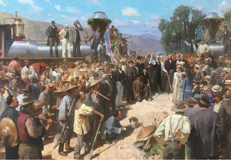 El 10 de mayo de 1869 la Central Pacific Railroad y la Union Pacific Railroad se encontraban en Promontory Summit (Utah) haciendo realidad el sueño de un gran ferrocarril transcontinental estadounidense, el proyecto de ingeniería más grande de la época, crucial para desarrollar el oeste americano y conectar a los Estados Unidos en toda su extensión.