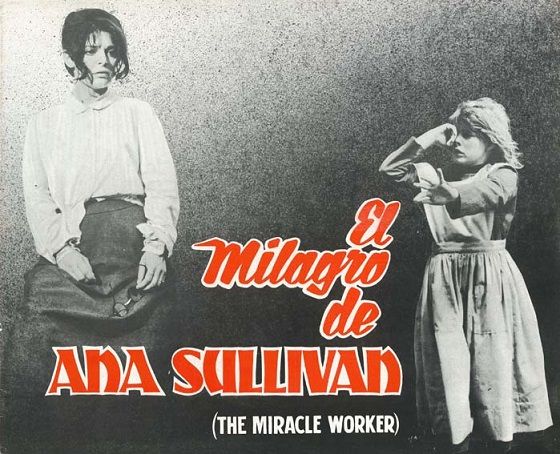Esta es la sinopsis de The miracle worker, en España El milagro de Ana Sullivan, de 1962, una película basada en el libro La historia de mi vida, una autobiografía que Helen Keller escribió en 1903, y por la que tanto Anne Bancroft, interpretando a Ana Sullivan, como Patty Duke, a Helen Keller, fueron premiadas como mejor actriz protagonista y mejor actriz de reparto. Es apenas un detalle, pero si volvéis a leer un momento la sinopsis de la película os daréis cuenta de que Helen era sorda y ciega, y ahora decimos que el guion se basa en un libro escrito por ella cuando tenía 23 años.