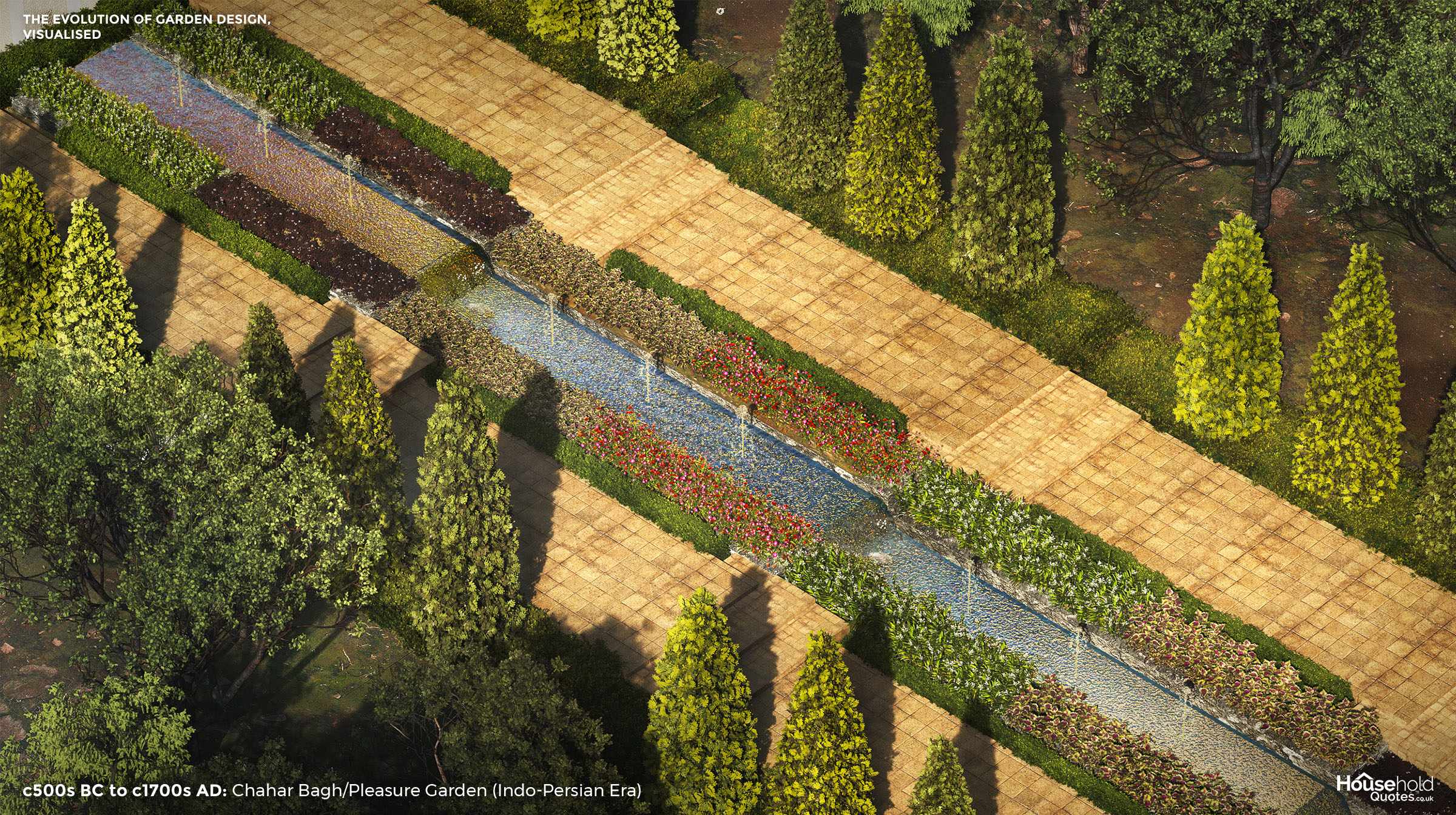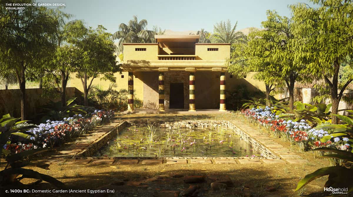 En nuestro apartado de reconstrucciones, representaciones en 3D y mundos virtuales, de la mano de Household Quotes tenemos la evolución de los jardines a lo largo de la historia. Diferentes diseños de jardines influenciados por las tendencias de cada época, desde el Antiguo Egipto hasta nuestros días, y en los que se reflejan las prioridades de cada lugar, desde jardines tipo «agricultura rudimentaria» o con un toque salvaje hasta verdaderas muestras de arte y símbolos de riqueza y exclusividad.