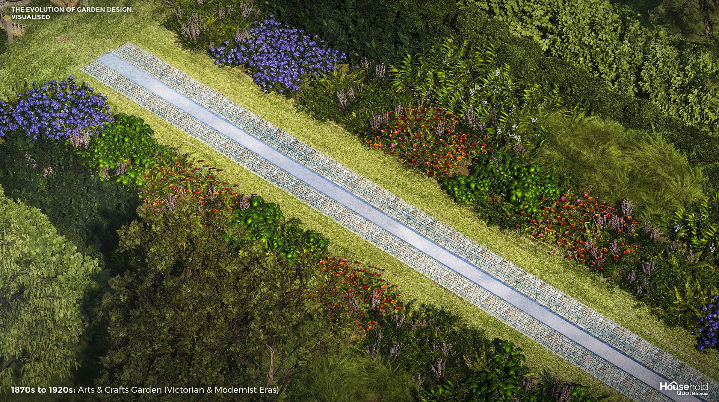 El movimiento Arts and Crafts, un movimiento artístico originado a finales del siglo XIX en Gran Bretaña y posteriormente extendido a otras partes del mundo, valoraba la autenticidad y un enfoque práctico. Su manifestación en el jardín no fue diferente. La fidelidad al lugar era primordial, por lo que era fundamental el uso de plantas y materiales autóctonos. El jardín de Artes y Oficios debe expresar la personalidad de sus dueños. Comienza como una extensión de la casa y luego se funde con el paisaje más allá de la parcela del propietario, pasando al bosque o al campo.