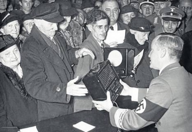 Hitler tenía claro que un pueblo se controla dominando la educación y los medios de comunicación. Así ha sido, es y será. Tras la propaganda desmesurada durante la Primera Guerra Mundial, basada mayormente en informaciones falsas o desvirtuadas, se había producido una ola de protestas en Europa cuando sus ciudadanos se enteraron de la verdad. El desengaño sufrido por la población británica y norteamericana tras conocer la manipulación informativa de la que habían sido objeto, influyó notablemente en la decisión de los responsables de esos países de prescindir de los cuentos de atrocidades en la época de entreguerras, que luego se repetiría en la Segunda Guerra Mundial. Por el contrario, a Hitler le dolió sobremanera los abusos periodísticos sufridos por Alemania y, sobre todo, los propios errores en materia de propaganda, por lo que decidió que ahora no iba a ocurrir. La propaganda se iba a convertir en un pilar fundamental de su política. Y para eso tenía al maestro de la propaganda y la confusión, Joseph Goebbels. Una vez controlados los medios de emisión (prensa, radio y televisión), había que asegurarse de que los mensajes llegasen a la población. Para ello, se destinó una importante partida para subvencionar la fabricación de receptores de radio. De esta forma, los precios de venta eran asequibles y todos los alemanes podían hacerse con un aparato de radio para poder escuchar la propaganda teledirigida de los nazis. A los Volksempfänger («receptores del pueblo»), la gente los llamaba Goebbelsschnauze («el hocico de Goebbels»)
