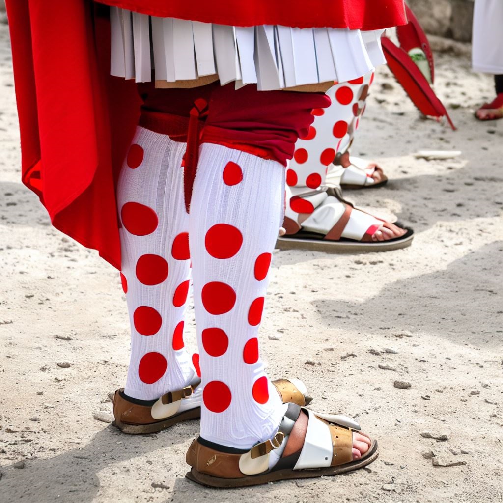 Aunque el término «guiri» se ha generalizado y ya se utiliza para designar a cualquier turista extranjero, los guiris pata negra están representados por una pareja anglosajona o germana, con acento versión doña Croqueta, amante de los topicazos del folclore nacional, de tez pálida que en nuestras playas se torna color cangrejo y que calzan sandalias con calcetines (normalmente blancos). Y cuidado, porque lo que para los españolitos de a pie era el cénit del mal gusto ha encontrado su sitio sobre la pasarela internacional y, lo que es peor, los insiders, los influencers, los trendsetters… (y otros anglicismos que nacieron para vivir del cuento) se han encargado de convertir en tendencia. Pues nada de nada, porque aparte del alcantarillado, la sanidad, la enseñanza, el vino, el orden público, la irrigación, las carreteras y los baños públicos, también les debemos este «invento» a los romanos.