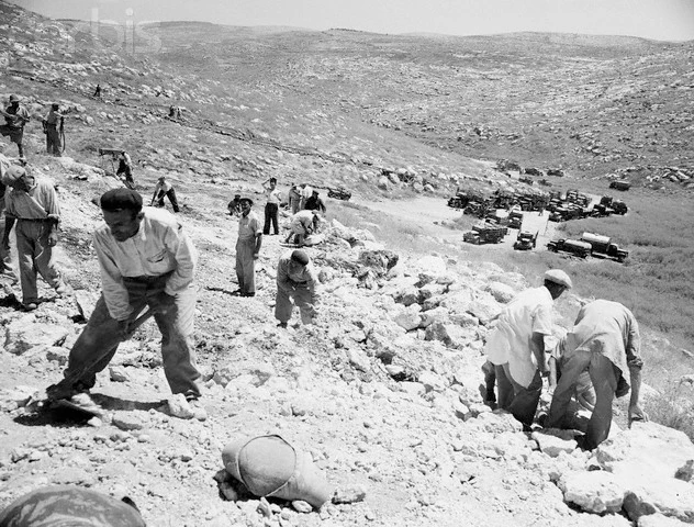 A finales de mayo, encontraron una ruta al suroeste que evitaba aquella ratonera y que quedaba oculta desde la posiciones de los árabes. El problema es que era un camino sinuoso de piedras, con tramos estrechos y una zona con una pendiente prolongada. En circunstancias normales esta ruta se habría descartado, pero las circunstancias eran cualquier cosa menos normales. Así que, se pusieron manos a la obra (y nunca mejor dicho porque para no delatar su posición no pudieron utilizar explosivos) para hacer transitable aquel camino de cabras. Los sitiados no podían resistir mucho más, por lo que hubo que trabajar sin descanso para consolidar el firme y ensanchar el camino lo suficiente para pasar los camiones. El 1 de junio de 1948 partían de Tel-Aviv los primeros camiones cargados con alimentos, agua, suministros militares y médicos que dieron un respiro a la agónica Jerusalén. Eso sí, los vehículos de aquel primer convoy tuvieron que parar al pie de la cuesta y descargar los suministros que llevaron hasta la cima centenares de hombres y burros durante la noche. A esta ruta clandestina se le llamó la Ruta de Birmania, sobrenombre tomado de la carretera construida por los aliados durante la Segunda Guerra Mundial que atraviesa una región montañosa conectando Birmania con el suroeste de China y que los británicos utilizaron para enviar suministros a los chinos para evitar el bloqueo japonés.