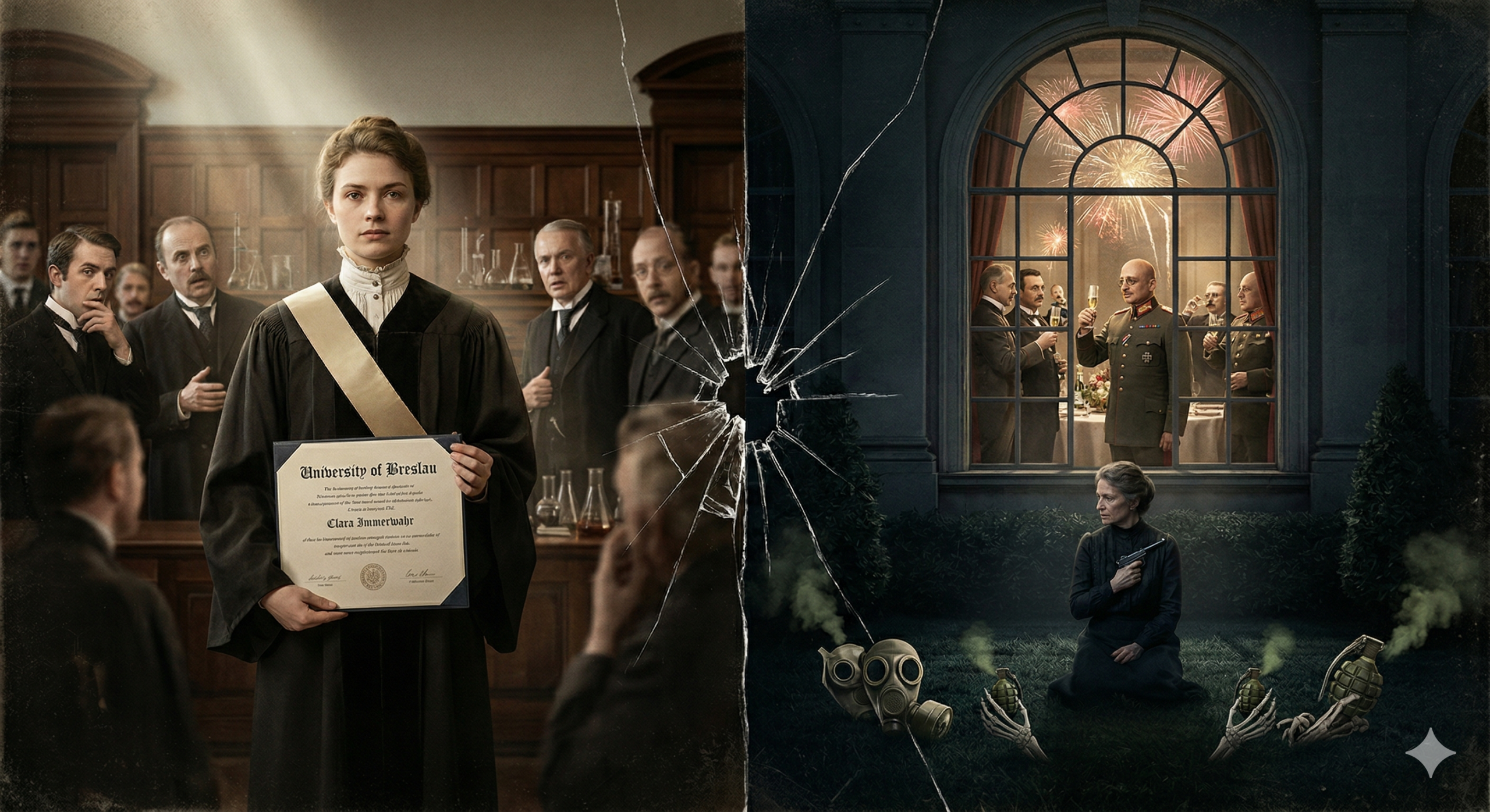En 1900 lo consiguió. Primera doctora en Química de toda Alemania. Con matrícula de honor. El tribunal de examinadores, todos hombres, todos con barba, todos convencidos de que aquello era una anomalía pasajera, tuvo que reconocer que la señorita Immerwahr sabía más que la mayoría de sus colegas con pantalón. El discurso que pronunció aquel día fue elegante, preciso y lleno de una esperanza que la historia se encargaría de hacer trizas.