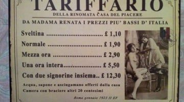 Tarifas de la famosa Casa del Placer madam RENATA, los más bajos de Italia. Polvo rápido – 1.10 Normal – 1.90 Media Hora – 2.90 Una …